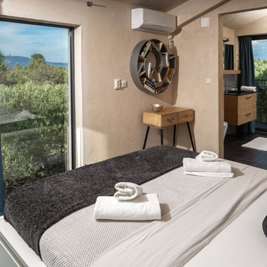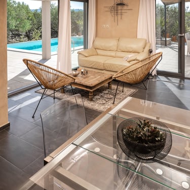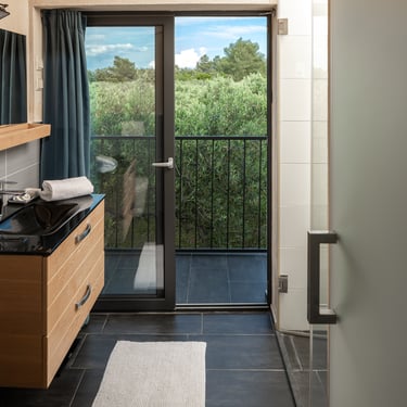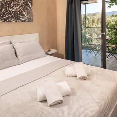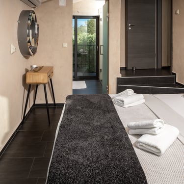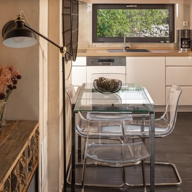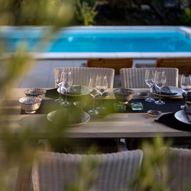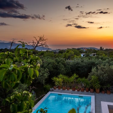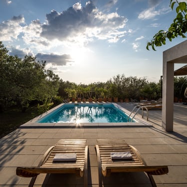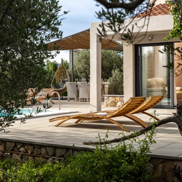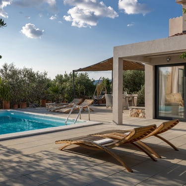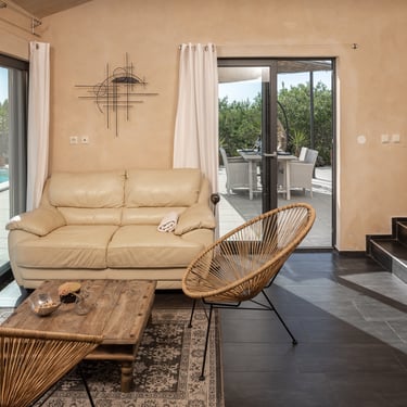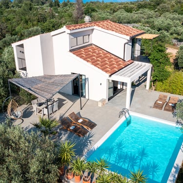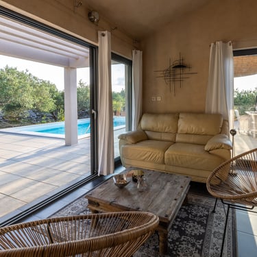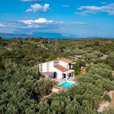 One of the features of the property is an olive grove enveloping the house. Among the olive trees stands a remarkable rejuvanated olive tree, estimated at around 3000 years old - a true living relic. The age estimation gauged from the trunk base's impresive 2,3 meter width, a classic sign of Mediterranean milennial olives. The original trunk was pruned for renewal, now sprouting seven vigorous new shoots that embody resilience and timeless vitality. Far more than ornamentation, thistree weaves family heritage with natural splendor.