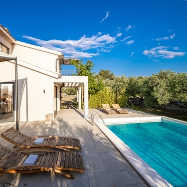 It is situated on the island of Hvar on the outskirts of Mala Rudina village, just two kilometers away from Stari Grad. The villa is surrounded by olive groves and positioned in the center of a 1350 square meter plot.
